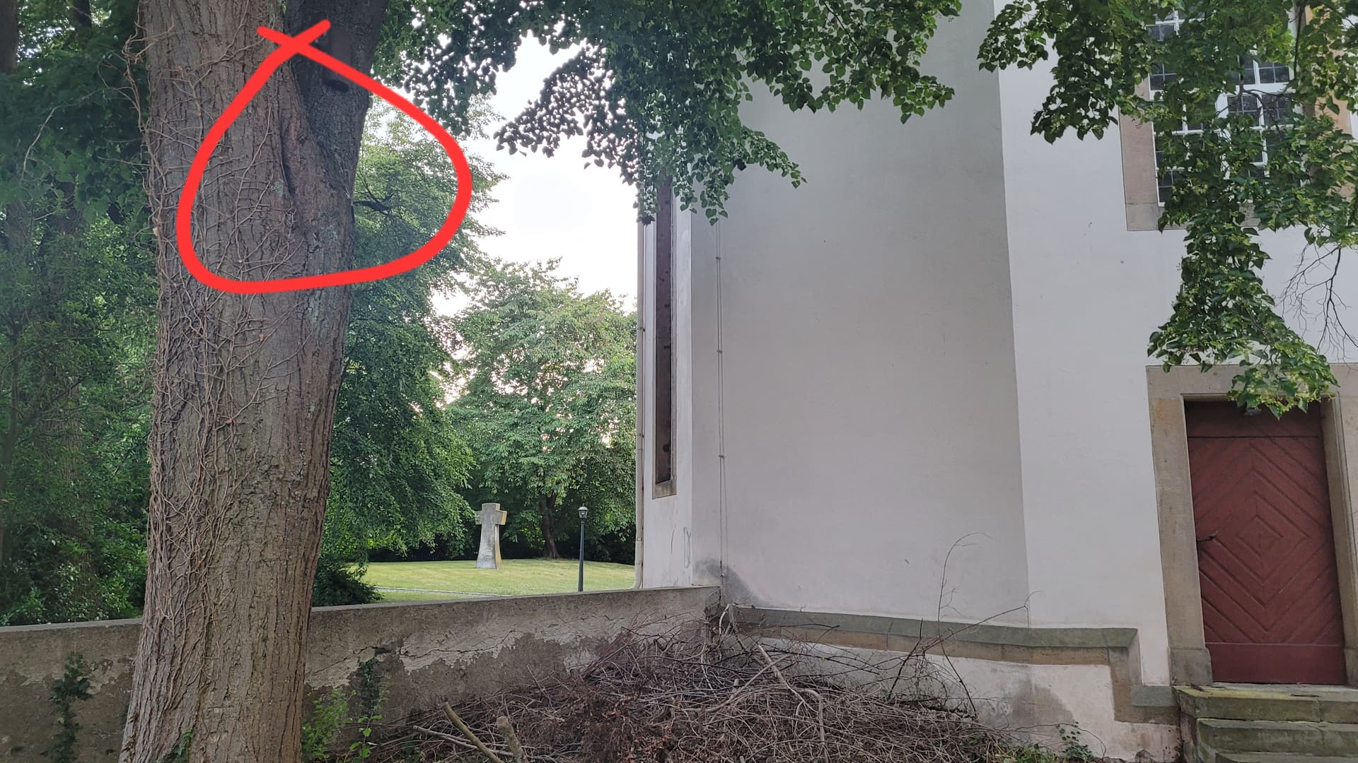 Ich war hin- und hergerissen, ob ich der Kirchengemeinde bescheid sage… habe mich dann aber dagegen entschieden, weil ich möchte, dass der Baum noch lange dort steht.